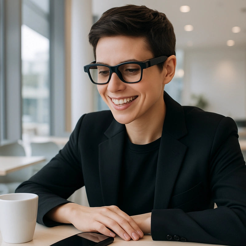 Wear sleek blue light glasses that shield your eyes from screen strain — perfect for all-day comfort and effortless style.